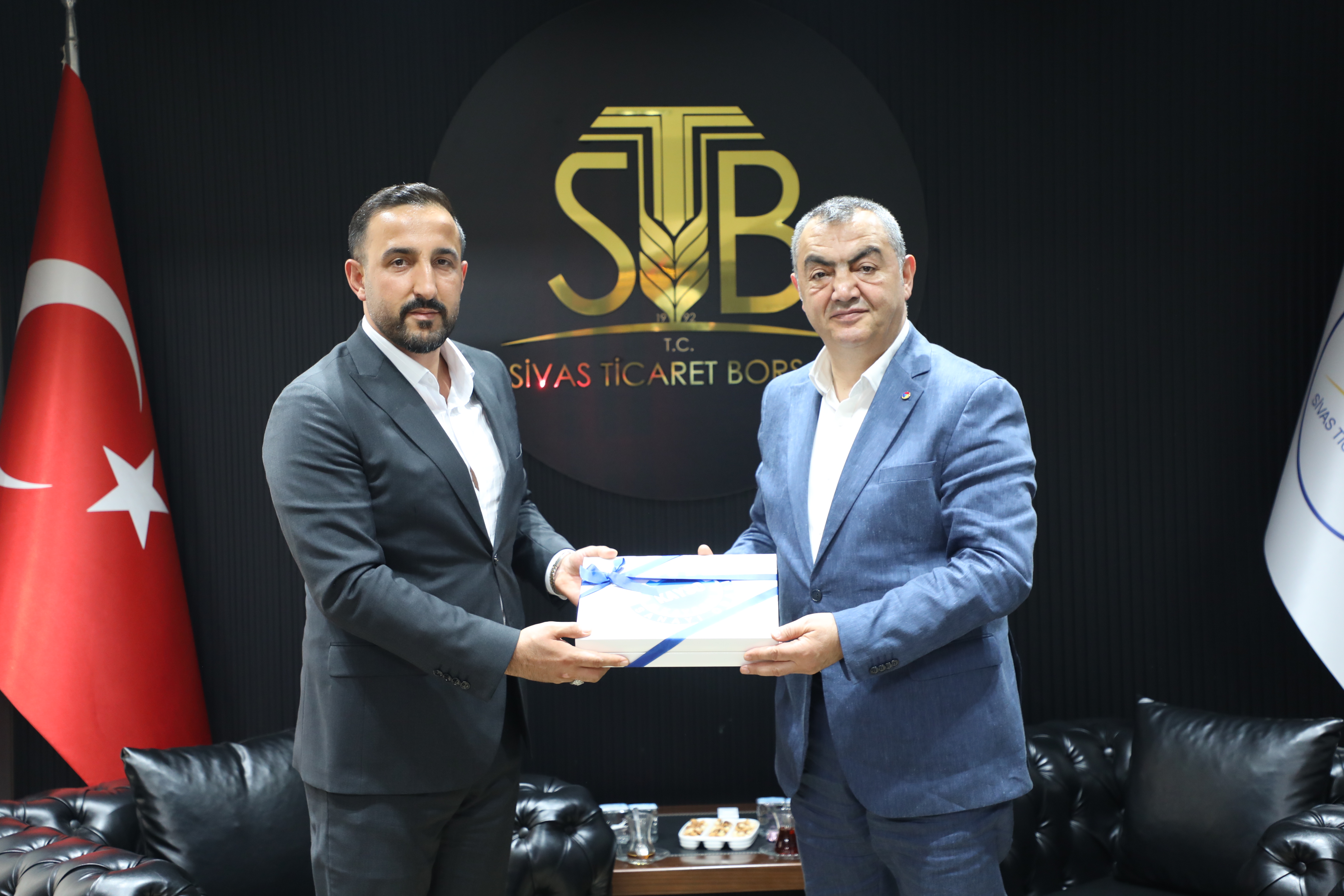 Türkiye Odalar ve Borsalar Birliği (TOBB) Yönetim Kurulu Üyesi ve Kayseri Sanayi Odası (KAYSO) Başkanı Mehmet Büyüksimitci ve TOBB Uzmanı Kadir Akalın ile birlikte Sivas temasları kapsamında Sivas Ticaret Borsası’nı ziyaret etti.